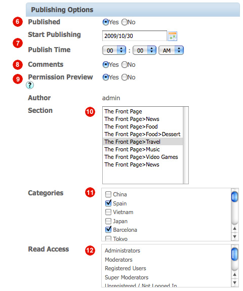 6. Publish Status: Enable article to be published or un-published.